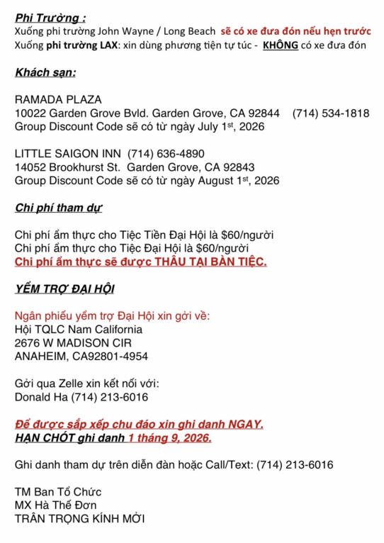 Chương trình sơ bộ Đại Hội TQLC 2026